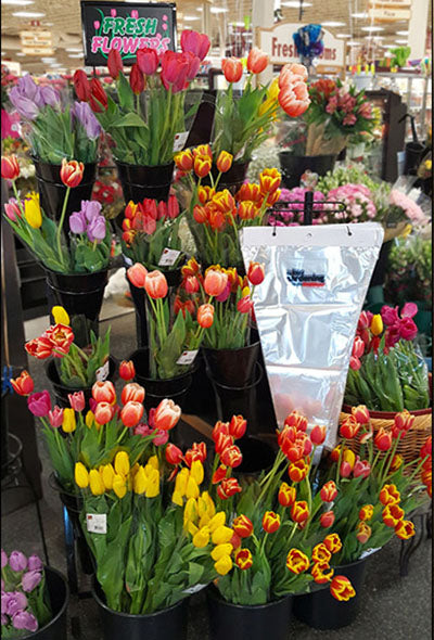 Whether you are looking to showcase a single vase on a free-standing pole or a flourishing “wall of flowers”, our Floral Displays are for you. Our monochromatic displays will make your floral pop! We offer a multitude of different orientations and sizes all for great low prices.