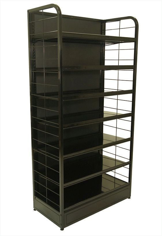 This display features 7 adjustable shelves and a solid back panel. The wire sides offer opportunities for additional merchandising. Perfect for creating a display at the end of aisles, or back-to-back as a freestanding unit!
