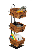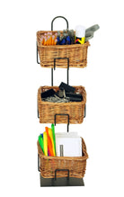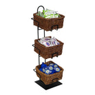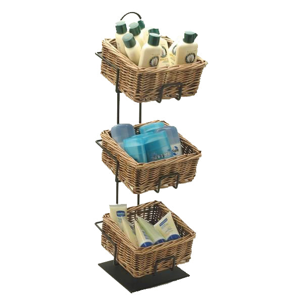 This is our 3 tier small square willow basket counter display. This display comes complete with a wire frame and 3 square willow baskets.