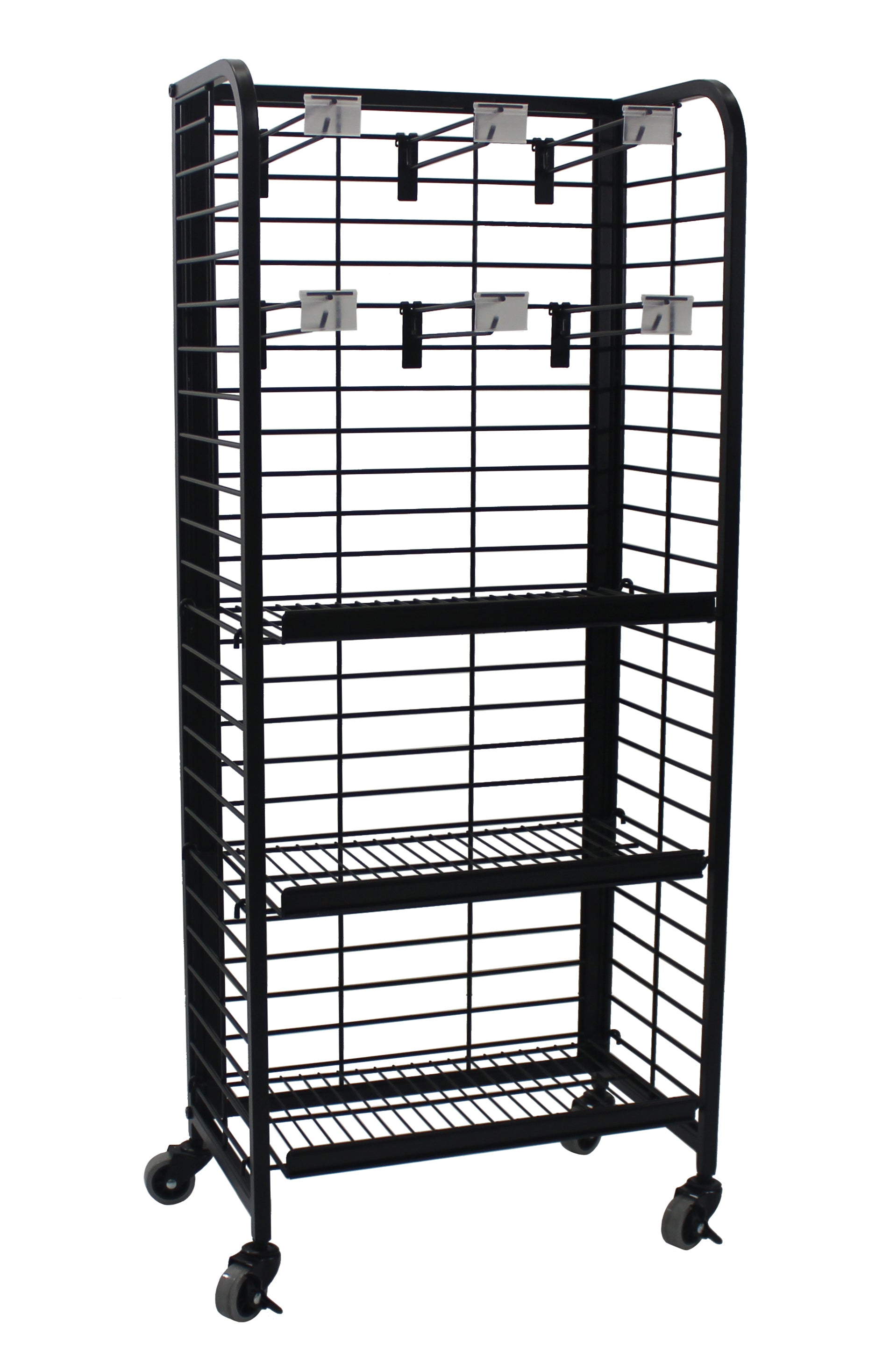 Our Gondola displays come in many shapes and sizes allowing for the creation of your perfect floor plan. We also offer variety in our shelving options, such as: flat, angled, hooked, wire, or sheet metal shelving. Perfect for bakery items, snacks, candy, and wine.