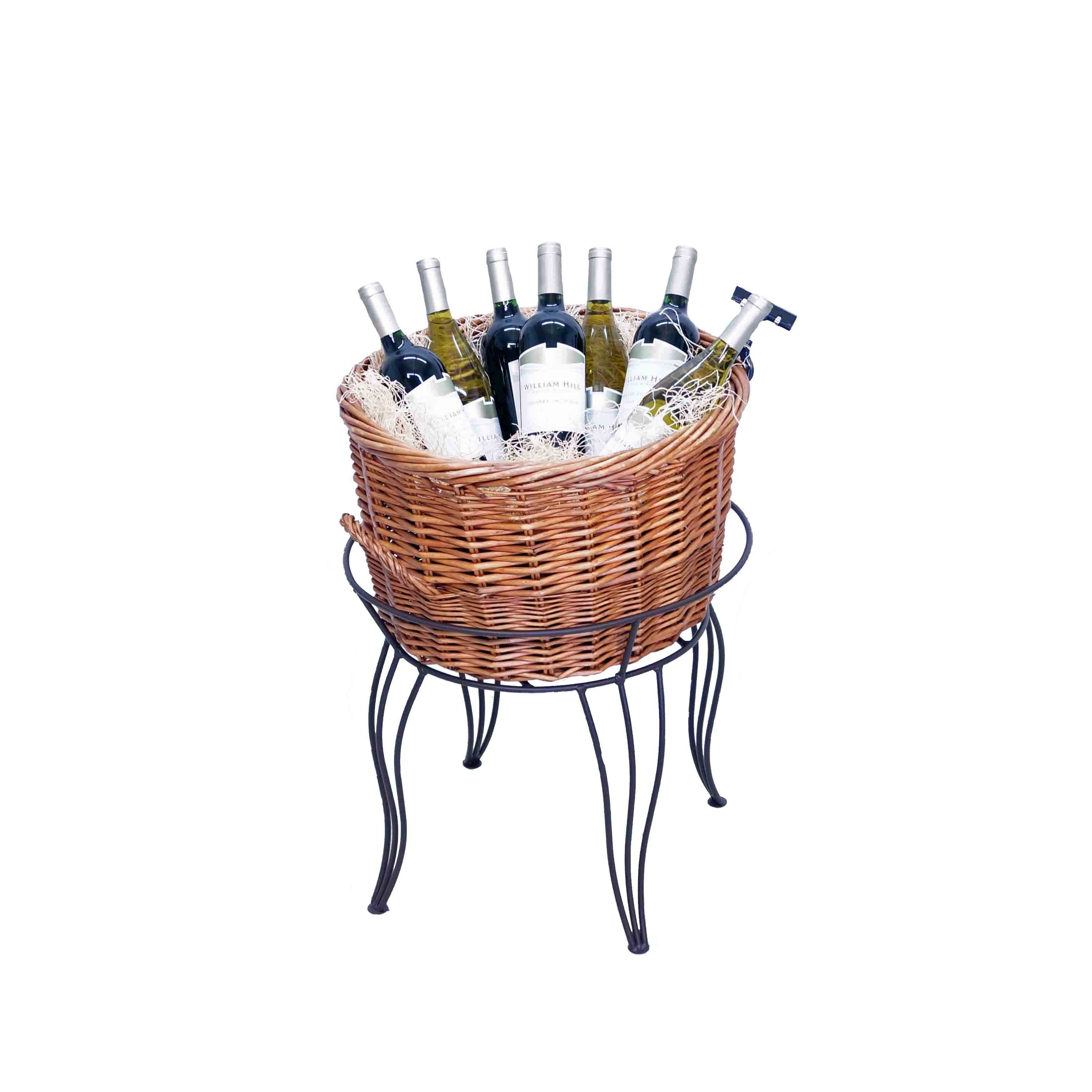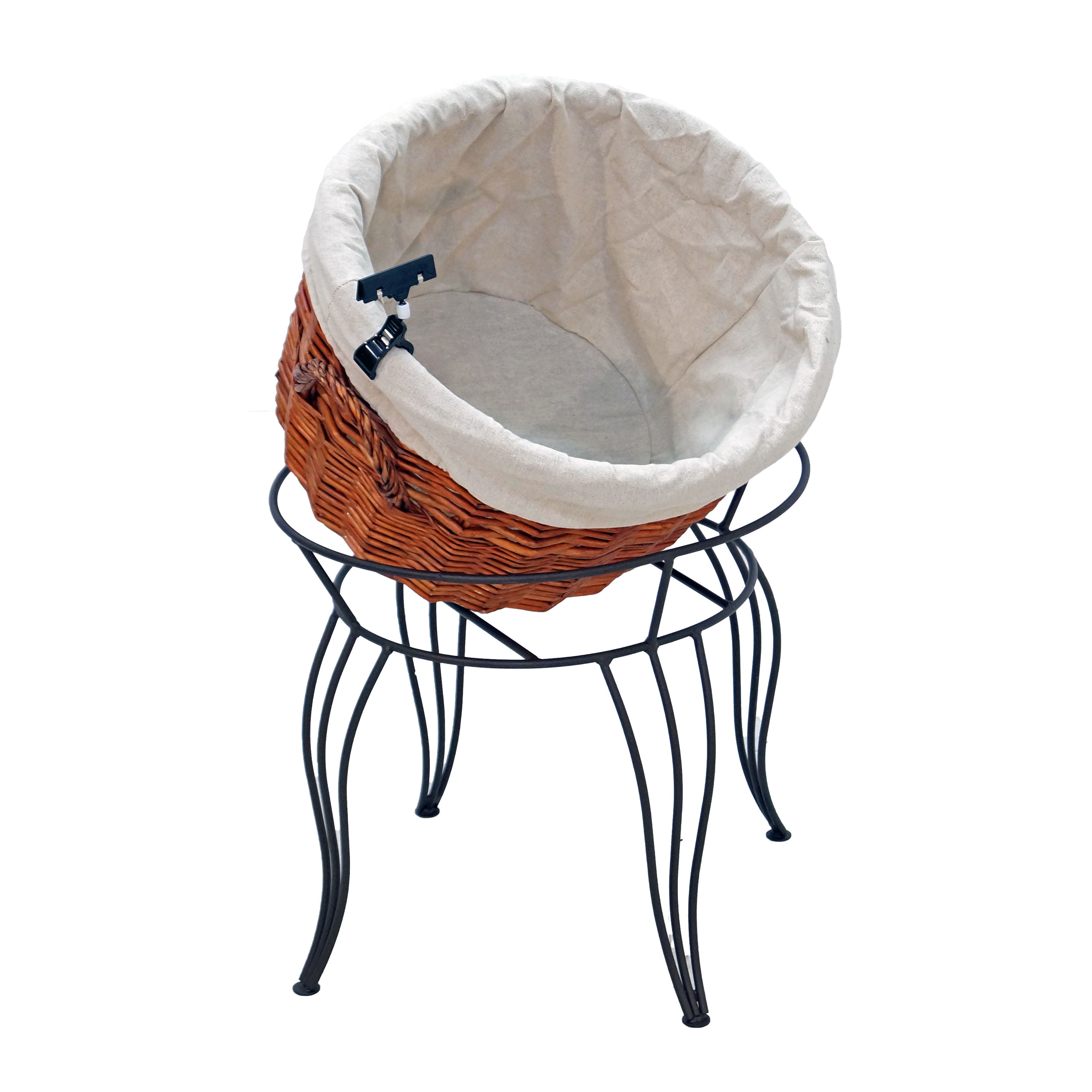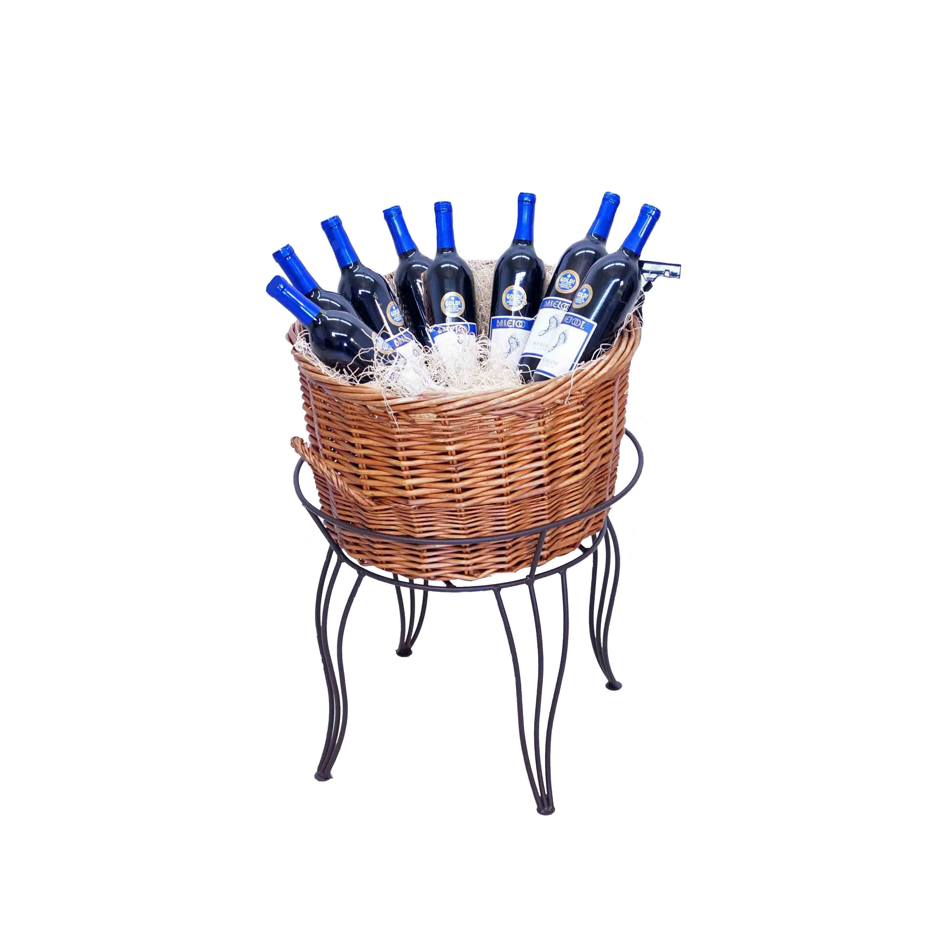 This is our 1-Tier Round Willow Basket Display with Cloth Liners. The Display comes with a single round willow basket, one steel base, one cloth liner, and one sign clip.