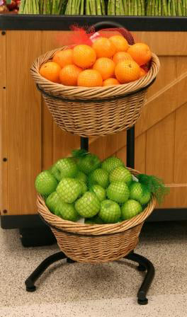 • Round Willow Basket displays can be placed at the end of a fruit and vegetable aisle with apples and oranges. This will not only display the fruit you are selling but will add color to your aisle.
