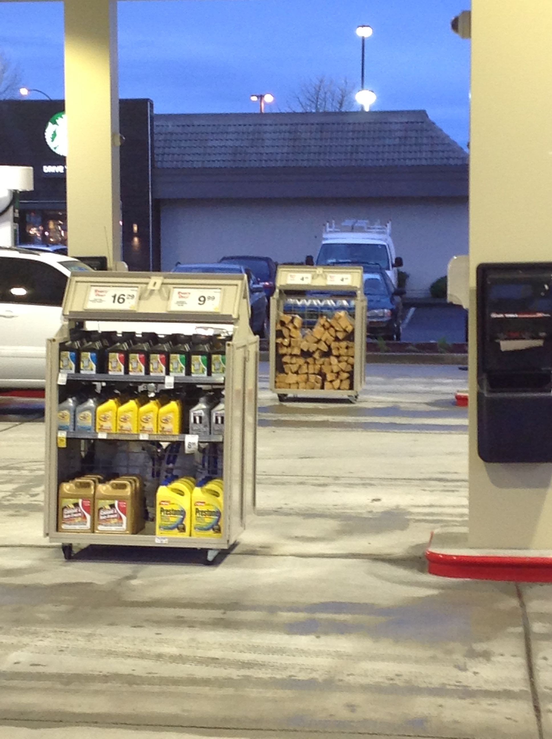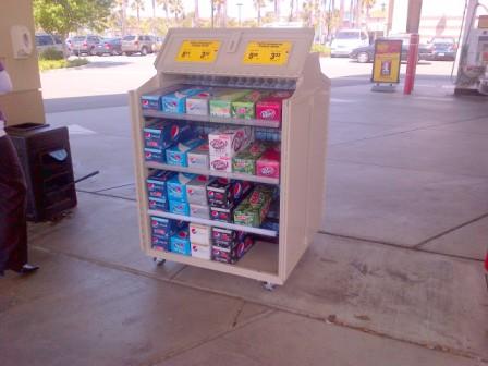 This custom display is an outdoor Mobile Cart that fits perfect at gas stations and convenience stores. Mobility and security all wrapped up into one multi-use display.